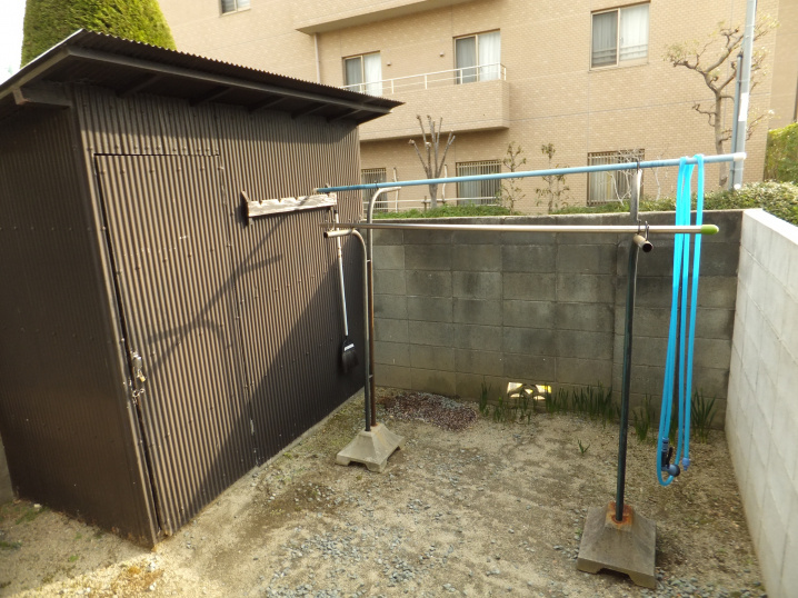 お庭には鍵をつけられる物置が有り、とてもしっかりしていました。
