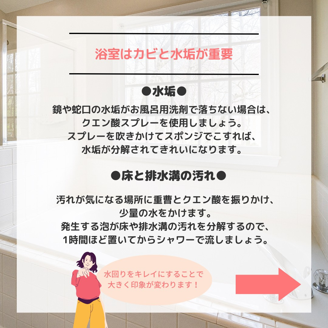退去時に浴室の掃除で注意するポイントを解説していきます!